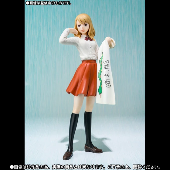 In the world of Tiger & Bunny, some humans with special powers have been recruited by a reality TV show called Hero TV to fight crime live on-air! Karina Lyle is a high school girl with dreams of becoming an idol singer who uses her special ability of manipulating ice to boost her profile by appearing under the name of “Blue Rose” on the TV show. This cute non-articulated statue from Tamashii Nations’ Figuarts Zero lineup has her in her regular clothes consisting of a red skirt, white shirt with a cute red bowtie, long black socks and court shoes. she also comes with interchangeable facial expressions, a left arm holding a towel and a right arm holding a book. Add this star in the making to your collection today for some cool-as-ice action. Why not pair her up with Kotetsu for some added cuteness?