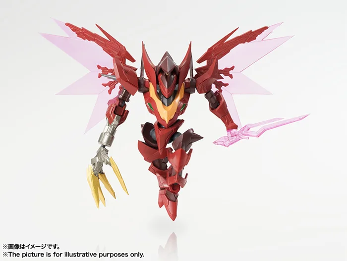 From the hit new brand NXEDGE STYLE comes the second addition to the Code Geass series line up: Guren S.E.I.T.E.N. Eight Elements, one of the most powerful frames from the story! Guren is portrayed with energy wings created using clear parts and its characteristic right hand is fully articulated with ball joints so you can pose his hand back to shoot radiant waves. Guren also comes with a Fork Knife that can be added to his hand. Set also comes with a NXEDGE stage.
