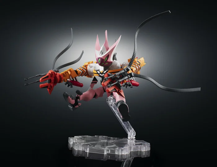 The Evangelion Type-08 β-ICC (improvised combat configuration), as seen in glorious aerial combat in the new movie Evangelion: 3.0+1.0 joins NXEDGE STYLE! Meticulous sculpting and more than twenty points of articulation make this figure a must-have for dramatic displays. The set includes two Gatling cannons, four bandoliers, and a stand.