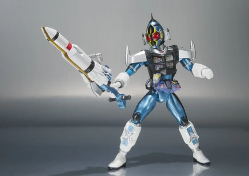Kamen Rider Fourze celebrated the franchises 40th anniversary in style by becoming the 13th series in the Heisei era of the show and the 22nd overall. Cosmic States is Fourzeโs blue and final form achieved by flipping the 40th and final Astroswitch: the Cosmic Switch. This highly detailed action figure from Tamashii Nationsโ S.H.Figuarts lineup perfectly captures his appearance from the show with its shiny metallic blue paint and the use of clear parts in his chest armor. He also comes with his signature Cosmic States weapon – the Barizun Sword, a little mini helper Nuggegyroika Foodroid robot and a series of interchangeable hand parts for all those amazing tokusatsu poses. In his final form, Kamen Rider Cosmic States is pretty much unrivaled, but why not get a few more Riders together for the most impressive showdown?
