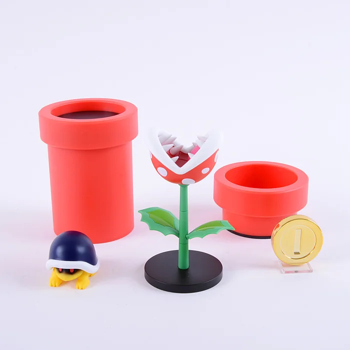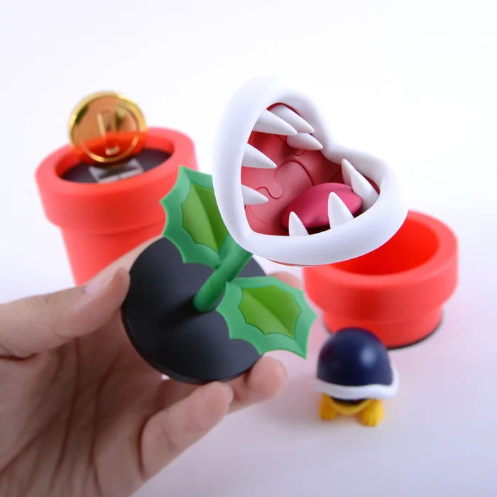 In the Box: Piranha Plant, red pipe, pipe lid, Buzzy Beetle, coin, coin pillar