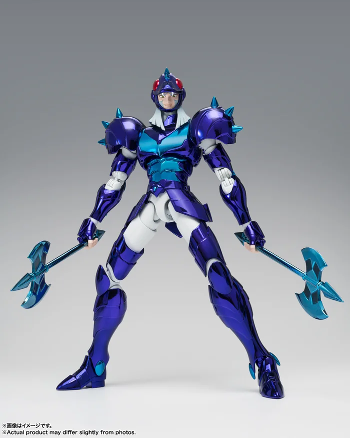 Introducing a colossal Saint Cloth Myth EX figure of Phecda Gamma Thor from Saint Seiya! As one of the tallest Saints in the franchise, this figure produced by Bandai does the character justice by measuring 9.8″ in height! Thor comes with three different facial expressions and several types of hands so that you can enjoy displaying him in a multitude of ways. For weapons, the mighty God Warrior of Asgard is equipped with his 2 Mjolnir hammers (battle axes), and effect parts that make them look like they’re spinning in air! And Thor’s Object Mode Frame includes diecast parts, adding a remarkable heft to the item!