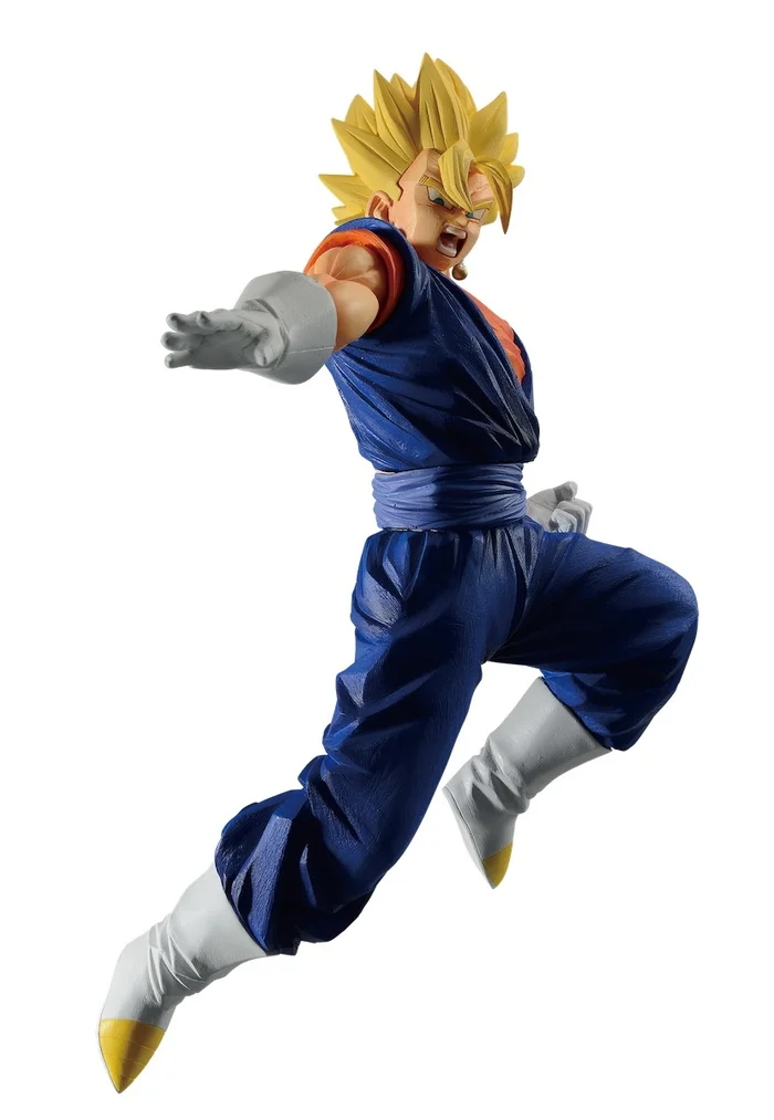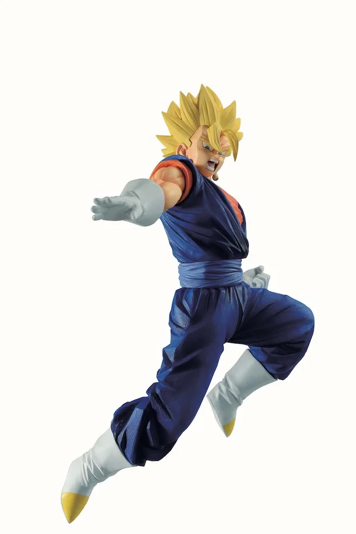 Few warriors in the history of the Saiyan race can match the unbridled might of Super Vegetto, a combination of the Z-Warriors, Vegeta and Goku! This 7.1” tall figure of Vegetto is in Super Saiyan mode and airborne. It looks as if he’s about to unleash a ki blast down towards an enemy below! With his mouth open as it is, you can hear him screaming, “HA!”